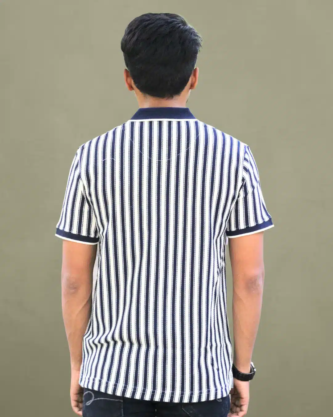 This polo T-shirt combines style and comfort with its sharp Blue and white vertical stripes. The design is clean and modern, featuring a solid navy blue collar and matching sleeve cuffs for a sleek, polished look. Crafted from a soft, high-quality fabric, this polo ensures maximum comfort and durability. Its timeless appeal makes it a go-to choice for any occasion, whether you’re heading to a casual brunch or a night out. Easily style it with shorts or jeans for a relaxed yet put-together ensemble.